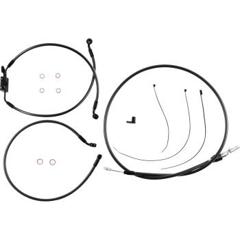 Kit includes throttle and idle cables of throttle-by-wire extensions, clutch cable or hydraulic clutch line, brake lines, copper crush washers, hardware, and any necessary switch wiring of turn signal extension, unless otherwise noted