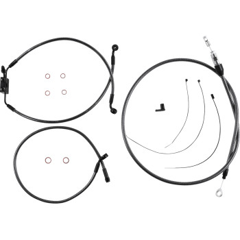 Kit includes premium brake lines, clutch cable or hydraulic clutch line, throttle and idle cables or throttle-by-wire extensions, hardware, and fully terminated or plug-and-play switch and turn signal extensions