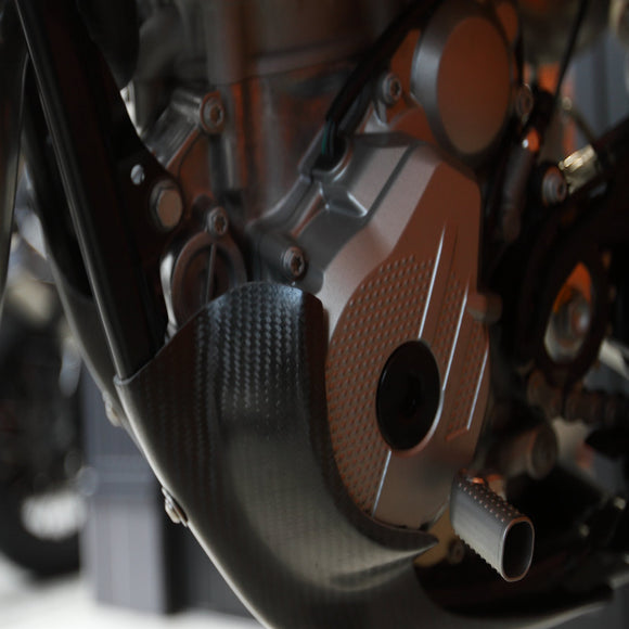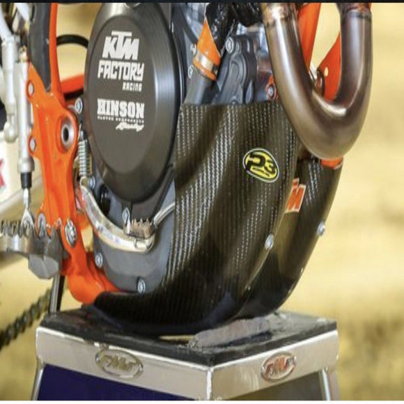 All of our Carbon, Kevlar, and Biaxial Glass Fiber bash plates combine a smooth, flowing design with seamless construction. They provide your motor and frame with the most protection possible. Similar in styling to the KTM Factory Team skid plates that are not available to the general public.
