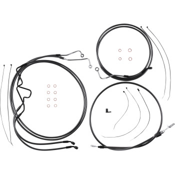 Kit includes throttle and idle cables of throttle-by-wire extensions, clutch cable or hydraulic clutch line, brake lines, copper crush washers, hardware, and any necessary switch wiring of turn signal extension, unless otherwise noted