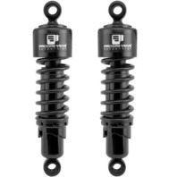 The 412 Series shocks are simply the best value shock on the market today. The 412s simple, durable design means they will be an improvement to your motorcycle's suspension performance for as long as you are riding it. The doublewall steel body construction with nitrogen charged, multi-staged velocity sensitive valving gives you smooth, consistent damping. A five-position cam style preload adjuster lets you dial in your ride whether you're a light rider or heavy hitter. With multiple options like full show chrome or black covers, chrome or black springs in progressive rate, Standard or Heavy-Duty for most applications, there is sure to be a 412 that's right for you and your bike.