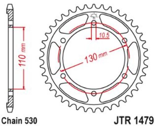 45T 530 Rear Black Sprocket for Yamaha YZF R1  JTR1479.45ZBK