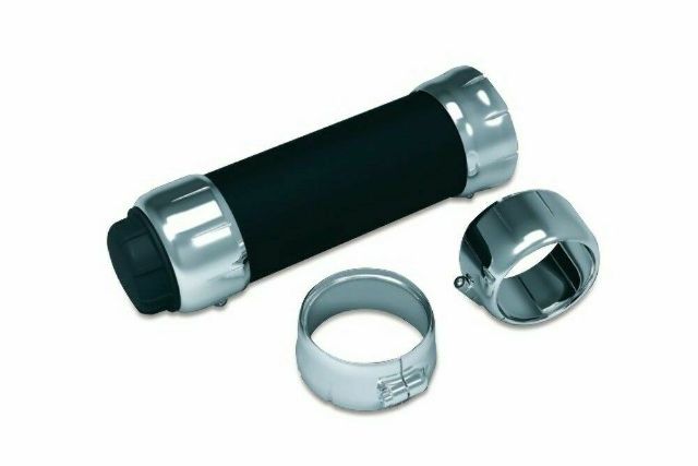 An easy and affordable way to revamp your stock heated grips! Outfitted with intricate notches, these accent rings are the perfect solution to the inconvenience and expense of replacing your entire grip. Die-cast aluminum construction offered in chrome or gloss black.