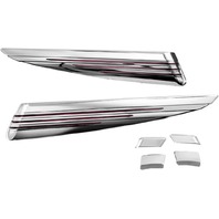 What's better than the look of extended saddlebags? Extended saddlebags with wrap around auxiliary lights built in! Kuryakyn L.E.D. Saddlebag Extensions for '14-later models provide Run, Turn & Brake functionality ('14-later Road King models only support Run and Turn functions). '93-'13 version provides Run and Turn functionality for all applications. Available in Chrome with Red Lenses or Gloss Black with Smoked Lenses, these saddlebag extensions bolt on securely and feature plug-n-play wiring for installation ease. Gloss Black version can be easily custom painted with minimal prep. The inward curved bottom edge gives these unique styling while reducing cornering interference often seen with other saddlebag extensions.