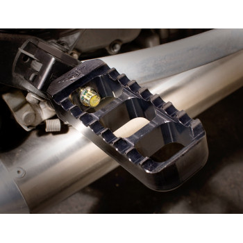 Pegs have a serrated foot surface area that gives a wider area for the boot and provides good "bite" for added grip