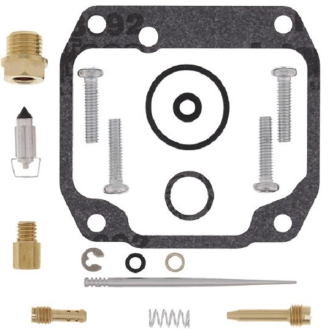 Kit includes all O-rings, gaskets, jets, needle, mixture screw, float bowl screws, float valve needle and seat.