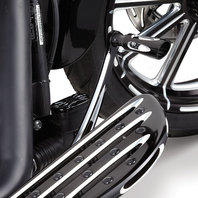 - Carved from billet aluminum and available in chrome-plated or black anodized finish