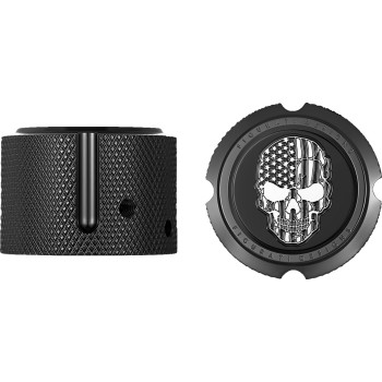 Axle Nut Cover Front Stainless Steel American Flag Skull - Contrast Cut - Black