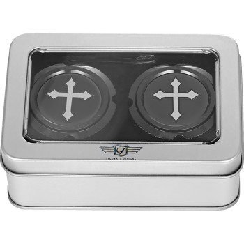 Axle Nut Cover - Front - Stainless Steel - Cross - Black