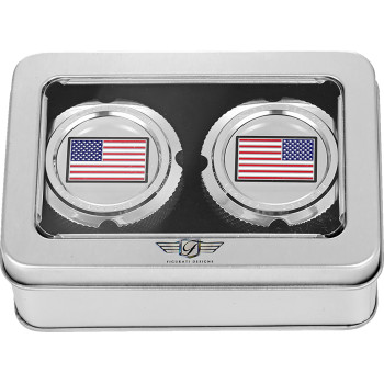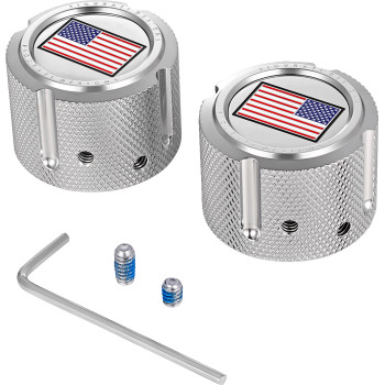 Axle Nut Cover - Front - Stainless Steel - Red/White/Blue Flag - Reversed - Silver