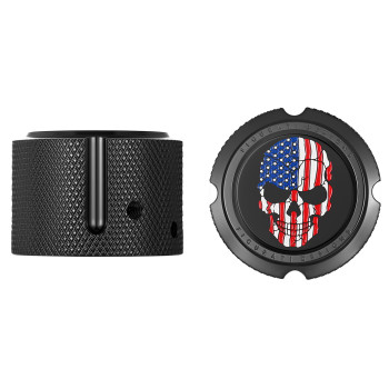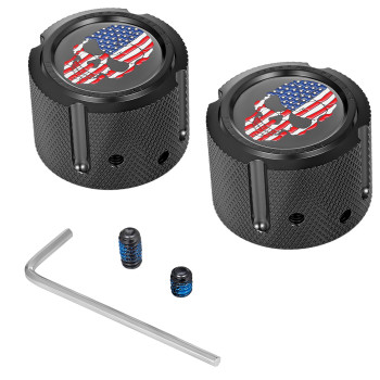 Axle Nut Cover - Front - Stainless Steel - Red/White/Blue Flag Skull - Black