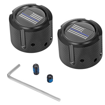 Axle Nut Cover - Front - Stainless Steel Blue Line Flag Black