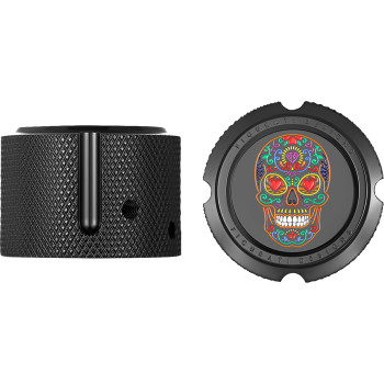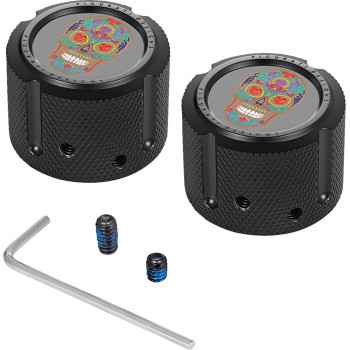 Axle Nut Cover - Front - Stainless Steel - Sugar Skull - Black