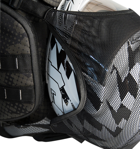 - Complete with Y-zip format, audio routing, storage tie-down points, helmet cargo net, oversized zipper pulls and space for tool storage