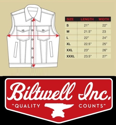 You can search haberdasheries and mega malls from Buffalo to Bass Lake and you won't find more features, higher-quality construction, a better fit or more enduring style than our Prime Cut vest. Available in six sizes to fit practically every bikerider imaginable, every Biltwell Prime Cut is American made and packed with outlaw spirit, guaranteed.