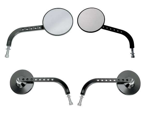 Mirror head swivels on a corrosion free stainless steel ball joint