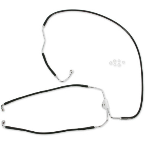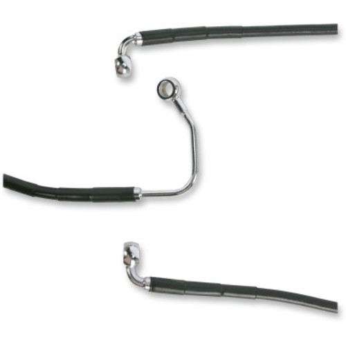 Features clear-coated stainless steel or black vinyl-coated braided lines with chrome steel fittings