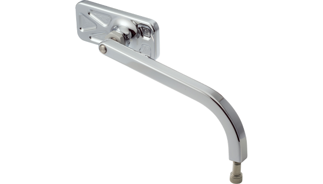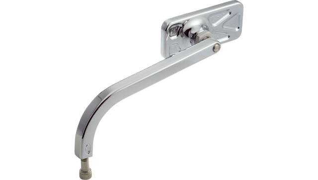 Mirror head swivels on a corrosion free stainless steel ball joint