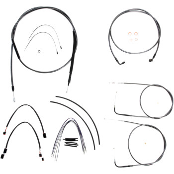 Kit includes throttle and idle cables of throttle-by-wire extensions, clutch cable or hydraulic clutch line, brake lines, copper crush washers, hardware, and any necessary switch wiring of turn signal extension, unless otherwise noted