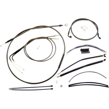 Kit includes throttle and idle cables of throttle-by-wire extensions, clutch cable or hydraulic clutch line, brake lines, copper crush washers, hardware, and any necessary switch wiring of turn signal extension, unless otherwise noted