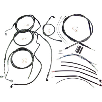 Kit includes throttle and idle cables of throttle-by-wire extensions, clutch cable or hydraulic clutch line, brake lines, copper crush washers, hardware, and any necessary switch wiring of turn signal extension, unless otherwise noted