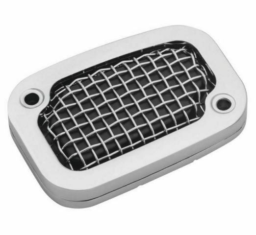 An aggressive custom transformation for the clutch master cylinder. Direct replacement with a three-piece design integrating an aluminum outer frame and baseplate with formed steel mesh insert. Individual components disassemble easily for custom finishes. Reuses stock gasket and includes hardware.