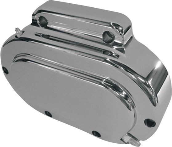 Convert your cable driven clutch to a hydraulic actuated setup with this Joker Machine Hydraulic Clutch Actuator. This part takes the place of your existing transmission side cover on your Harley big twin along with the ball & ramp setup to actuate your clutch push rod. The hydraulic setup provides a smoother, more consistent clutch feel. This kit comes with everything necessary to bolt on to your transmission. You will need an 11/16" bore clutch master cylinder and a standard brake line with AN-3 fittings. Joker Machine designed this side cover to be only 1 3/4" wide to avoid exhaust clearance issues as seen with other side covers. Fully CNC-machined, this beauty is cut, polished, and then finished.