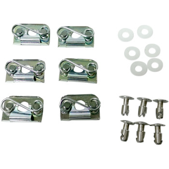 Each kit contains six fasteners and all supporting hardware including anti-scratch washers, rivets and springs or clips