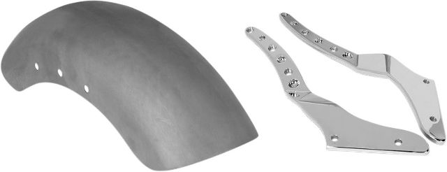 Clean and effective, the RSD Tracker Fender Kit greatly simplifies and lightens the back end of your Softail, in looks and weight. The RSD steel fender struts are first machined then bent to avoid the flat plate look. Our rear fender is bobbed for a tight fit to your rear tire. Easy and simple installation takes the guessing out of how to bob your Softail. Direct bolt-on to HD Softails (except Rocker) 3/8 in. thick 1018 steel struts 7 in. and 9 in. fender made from 1018 steel and available in raw finish only Rear fender and struts available separately Quality sheet metal work requires minimal preparation for paint