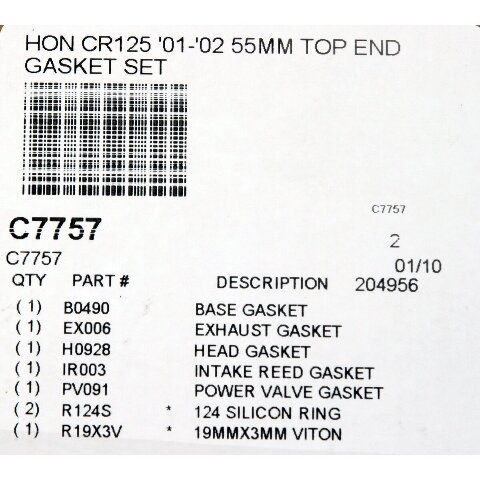 Top end gasket kit includes correct base, head gasket and cylinder O-rings as well as other top end specific O-rings or seals needed for R&R of top end
