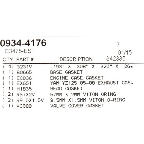 Top end gasket kit includes correct base, head gasket and cylinder O-rings as well as other top end specific O-rings or seals needed for R&R of top end