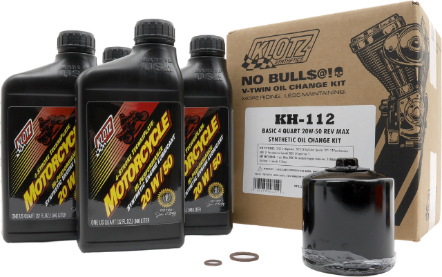 • Klotz® V-Twin Oil Change Kits come with just the right amount of lubricant, no more no less.