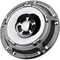 Round horn cover accepts any 5-hole point cover( sold separately ) Made of steel and finished in chrome or black powder-coated finish Replaces factory cowbell shaped horn cover on 91-11 Big-Twin models