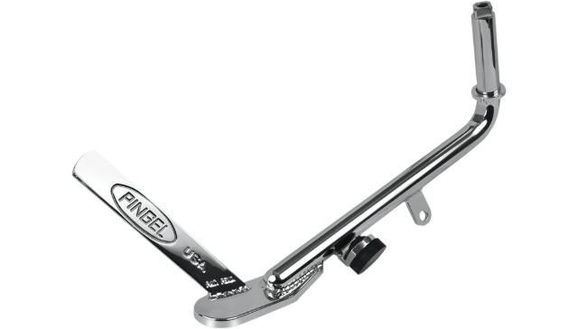 Large surface foot pad contact area supports the bike better on the ground; the longer kick tab is also easily accessible for use with stock and oversized primary covers