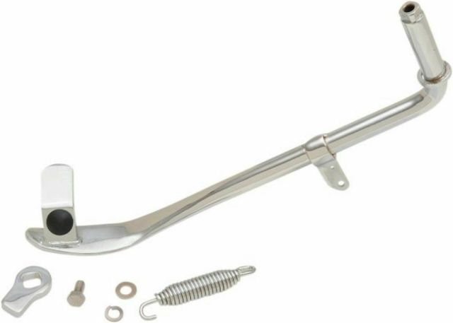 Kit includes a one-piece polished chrome mount with spring tab, kickstand, leg stop, spring and nut