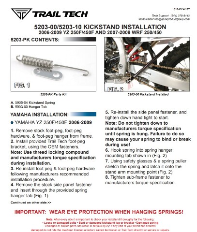 DISCLAIMER: Trail Tech Kickstands are intended for motorcycles with OEM equipment. Altering a bike with aftermarket wheels, suspension, or street tires can change a motorcycle's ride height and proper lean angle when parked. Please consider this when purchasing.
