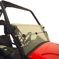 Half folding windshield Ø Convenient half folding design Ø 1/4\" abrasive resistant GE Lexan Ø Injection molded clamps and hinges Ø Black coated finish hardware Ø Easy to install Ø"