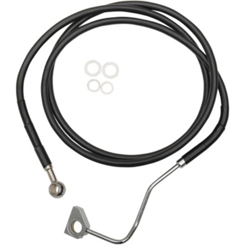 Features clear-coated stainless steel or black vinyl-coated braided extended lines with chrome steel fittings