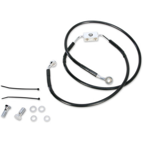 Features clear-coated stainless steel or black vinyl-coated braided extended lines with chrome steel fittings