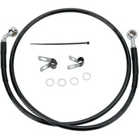 Features clear-coated stainless steel or black vinyl-coated braided extended lines with chrome steel fittings