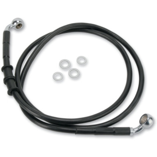 Features clear-coated stainless steel or black vinyl-coated braided lines with chrome steel fittings