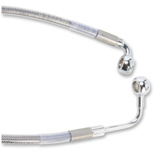 Features clear-coated stainless steel or black vinyl-coated braided extended lines with chrome steel fittings