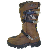 Available in black, full grain leather vamp, or brown, crazy horse leather vamp Ø Action leather shaft and suede inside panel Ø Hydro guard waterproof bootie lining Ø 200 gram 3M Thinsulate lining for warmth Ø Protective rubber gear change pad and toe Ø Slip resistant rubber sole