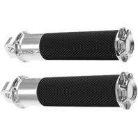 The perfect fusion of traction, style and comfort. Designed to match the Fusion line of grips. Footpegs are machined from billet aluminum and wrapped in diamond knurled or linear style rubber for excellent foot traction. Shifter pegs are constructed from machined billet aluminum and high traction rubber. Knurled style is constructed from molded rubber with integrated mounting stud and billet aluminum accents. Each foot and shift peg features intricate machining for a great look. Knurled style footpegs are made from forged steel and diamond knurled rubber with integrated billet aluminum end cap. Knurled and slot track shift peg is constructed from molded rubber and features an integrated mounting stud and billet aluminum end cap. Several styles to choose from in chrome or black anodize finish.