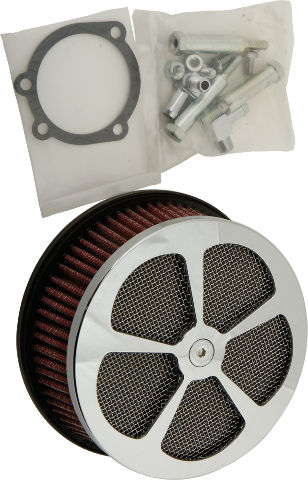 - Kits include back-plate hi-flow air filter element mesh filter cover and billet end cover