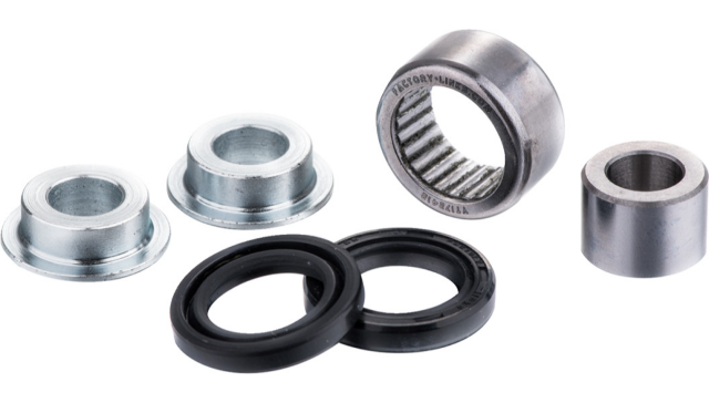 Factory Links OEM Series® Lower Shock Bearing Kits provide a complete solution for rebuilding the lower shock mounting assembly—restoring smooth suspension movement, eliminating play, and ensuring proper load transfer between the shock and linkage.