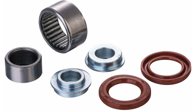 A: Each kit includes all components required to rebuild the lower shock mount, typically including needle bearings, pins, collars, and dust seals specific to your motorcycle model.