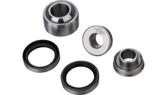 A: Each kit includes all components required to rebuild the lower shock mount, typically including needle bearings, pins, collars, and dust seals specific to your motorcycle model.