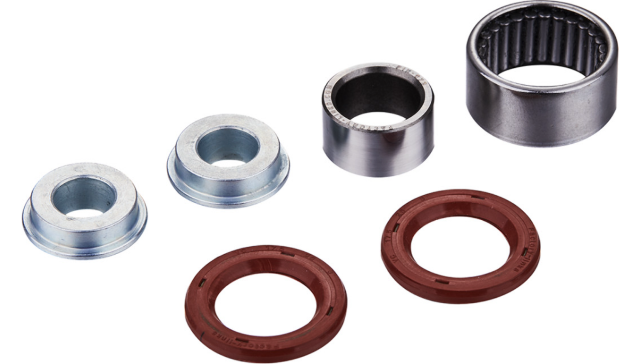 A: Each kit includes all components required to rebuild the lower shock mount, typically including needle bearings, pins, collars, and dust seals specific to your motorcycle model.