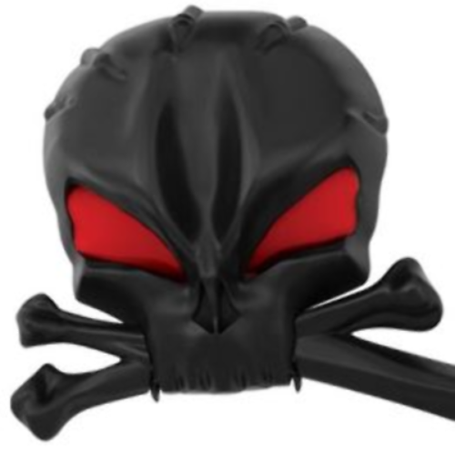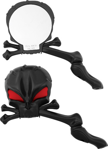 - Skull mirrors are available in matte black with red eyes and chrome with black eyes